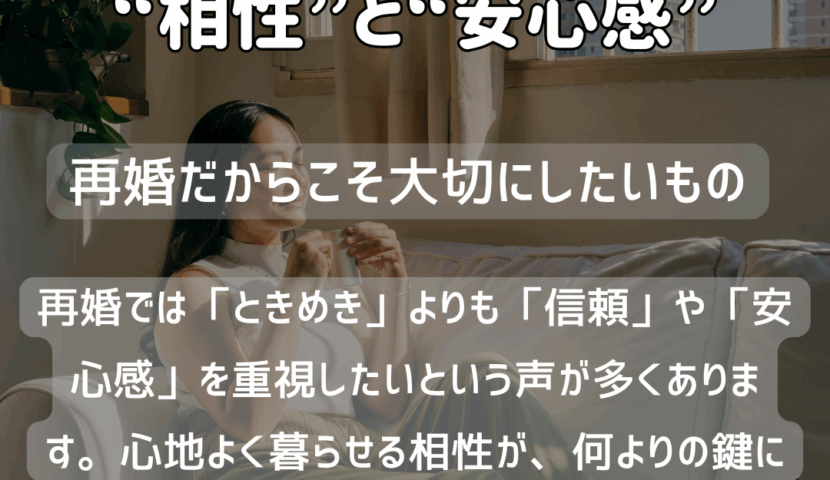 再婚を考えるとき、自分にとって理想のパートナー像を改めて見つめ直すことも大切です。安心できる関係とは何か、どんな家庭を築きたいのか。縁cafe(えんかふぇ)では、その整理から丁寧にサポートし、迷いに寄り添います。