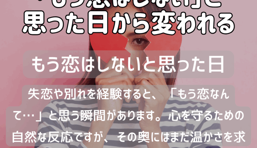 失恋や離別を経験すると、「もう恋はしない」と心を閉ざしてしまうことがあります。それは決して弱さではなく、自分を守るための自然な反応です。しかし、その奥には「本当はまた誰かと温かい時間を過ごしたい」という気持ちが隠れていることも多いのです。佐賀で新しい一歩を踏み出す方を、結婚相談所として私たちはそっと支えています。