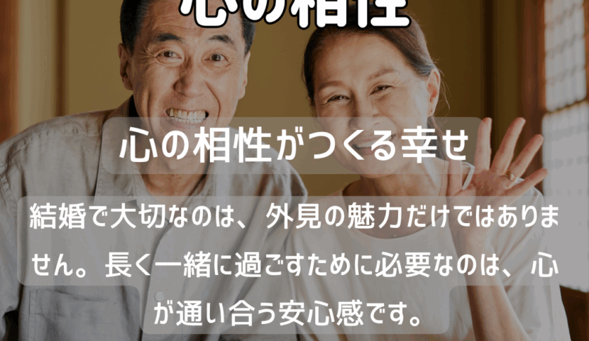 結婚は見た目の魅力だけで成り立つものではありません。特に年齢を重ねるほど、長く安心して過ごせるのは心の相性が合う相手です。互いに心地よくいられる関係は、外見を超えて幸せを支えます。佐賀 結婚相談所として、私たちは心の通い合いを重視しています。