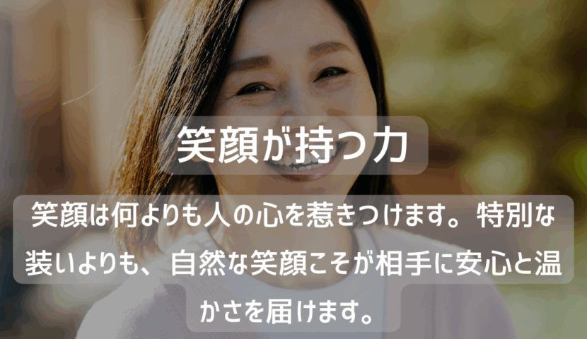 笑顔は「あなたを受け入れています」という無言のサインです。相手に安心感を与え、心を開かせるきっかけとなります。婚活では、自分を良く見せようとするあまり硬い表情になりがちですが、自然な笑顔はその緊張を和らげる最高のツールです。佐賀 結婚相談所としても重要視しています。