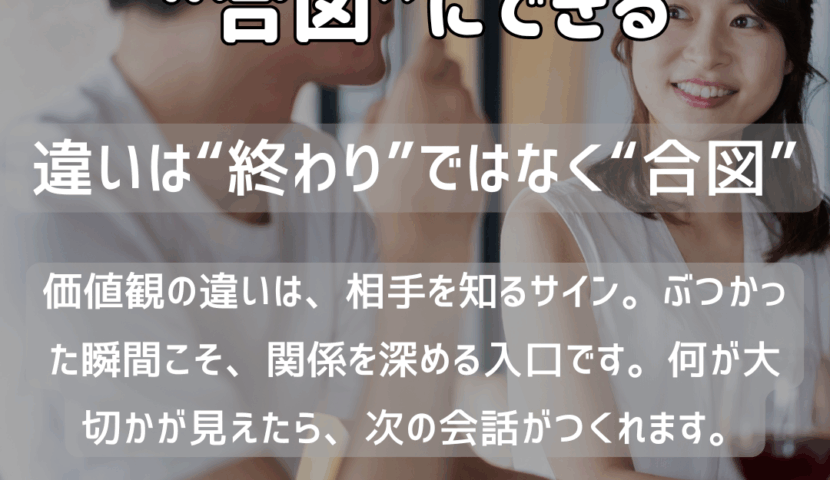 完全一致は稀です。違いが残っても「そう感じるのですね」と受け止め、相手の大切を尊重する姿勢を示します。理解が積み上がるほど、合わない点を安全に扱えるように。結果として、合意すべき重要ポイントに集中できます。