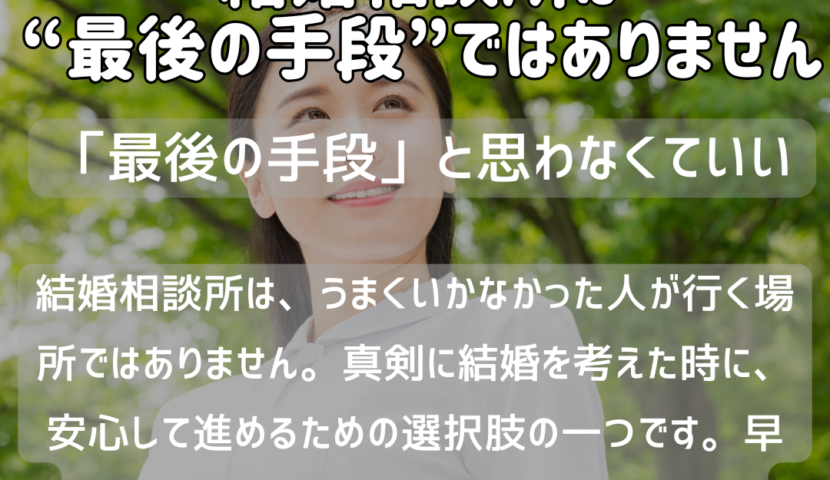 結婚相談所は「最後の手段」ではなく、安心の選択肢