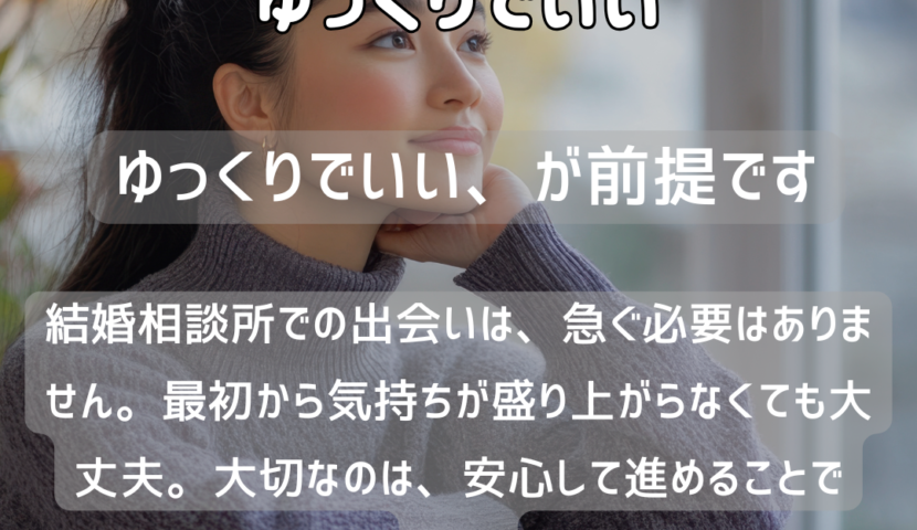 結婚相談所で出会う恋は、急がなくていい。むしろ、ゆっくり育てた関係ほど、結婚後の安心につながります。縁cafe(えんかふぇ)は、佐賀 結婚相談所として、結婚相談所 佐賀でお探しの方が、自分のペースでご縁を育てられる伴走を大切にしています。焦らず、比べず、あなたらしい速度で進んでいきましょう。